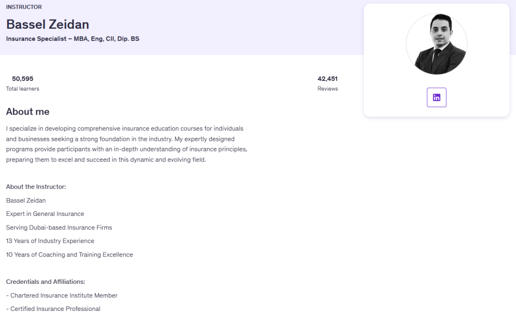 When you’re taking a professional course, the instructor’s background can make or break the experience. In this case, Bassel Zeidan brings a lot to the table. With over 13 years working in general insurance for Dubai-based companies, he’s not just teaching from textbooks—he’s sharing what actually happens in the field. That kind of first-hand perspective is really valuable, especially in an industry where theory and practice don’t always line up perfectly.