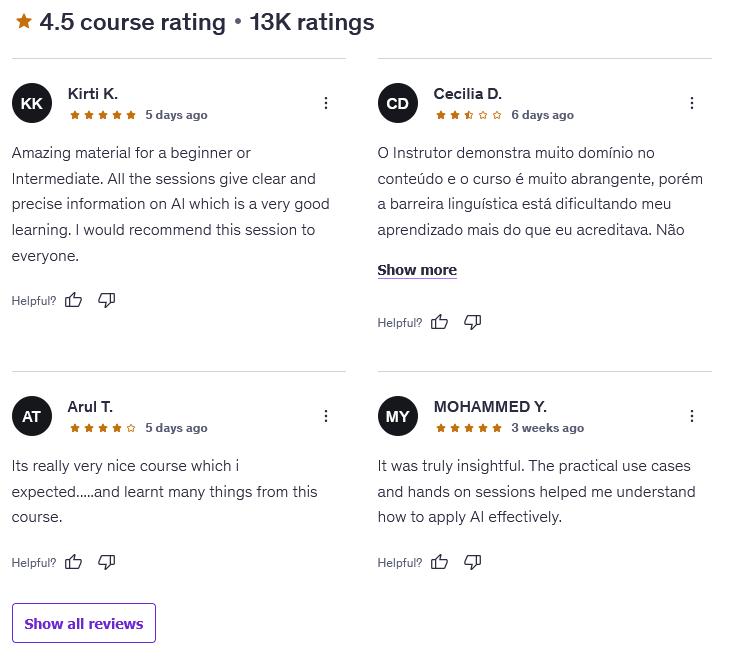 That said, highly technical learners or hands-on developers may find the course too high-level. This isn’t a course for coding models or building AI systems from scratch. But for its target audience—startup founders, executives, managers, strategists, and tech-curious leaders—that’s actually a strength, not a weakness.