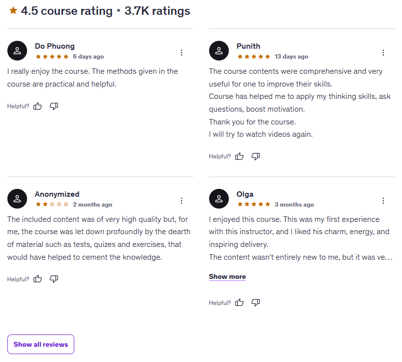 Another big plus is the instructor’s delivery and approachability. Alex Genadinik keeps the material engaging with clear explanations, encouraging energy, and plenty of examples. His emphasis on mindset and human factors also adds a layer of depth that many critical thinking courses overlook.