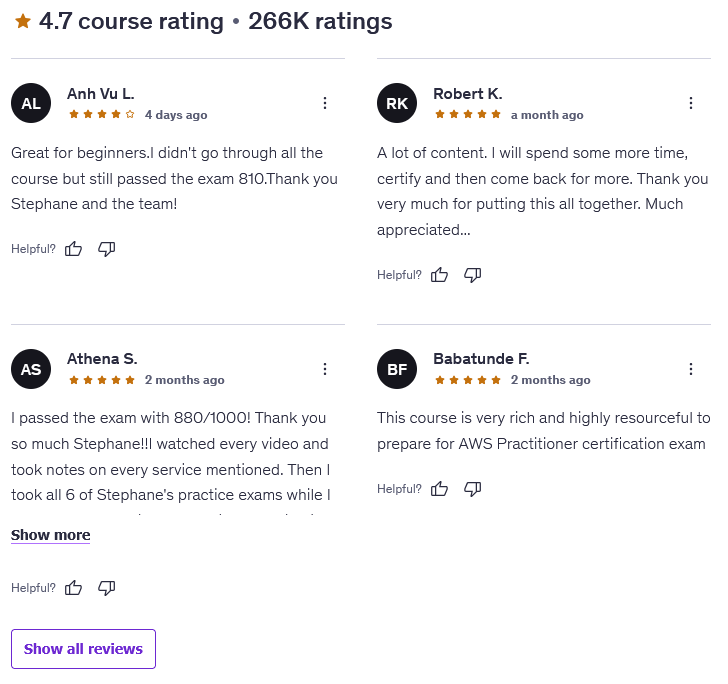 If I had to put a number on it, I’d give [NEW] Ultimate AWS Certified Cloud Practitioner CLF-C02 2025 a solid 9.5/10. That rating comes not just from my own impression of the structure and delivery but also from the overwhelming positive feedback from thousands of students who’ve successfully passed the AWS Cloud Practitioner exam after taking it. It’s clear that this course isn’t just another generic Udemy course—it’s a carefully built program with a track record of results.